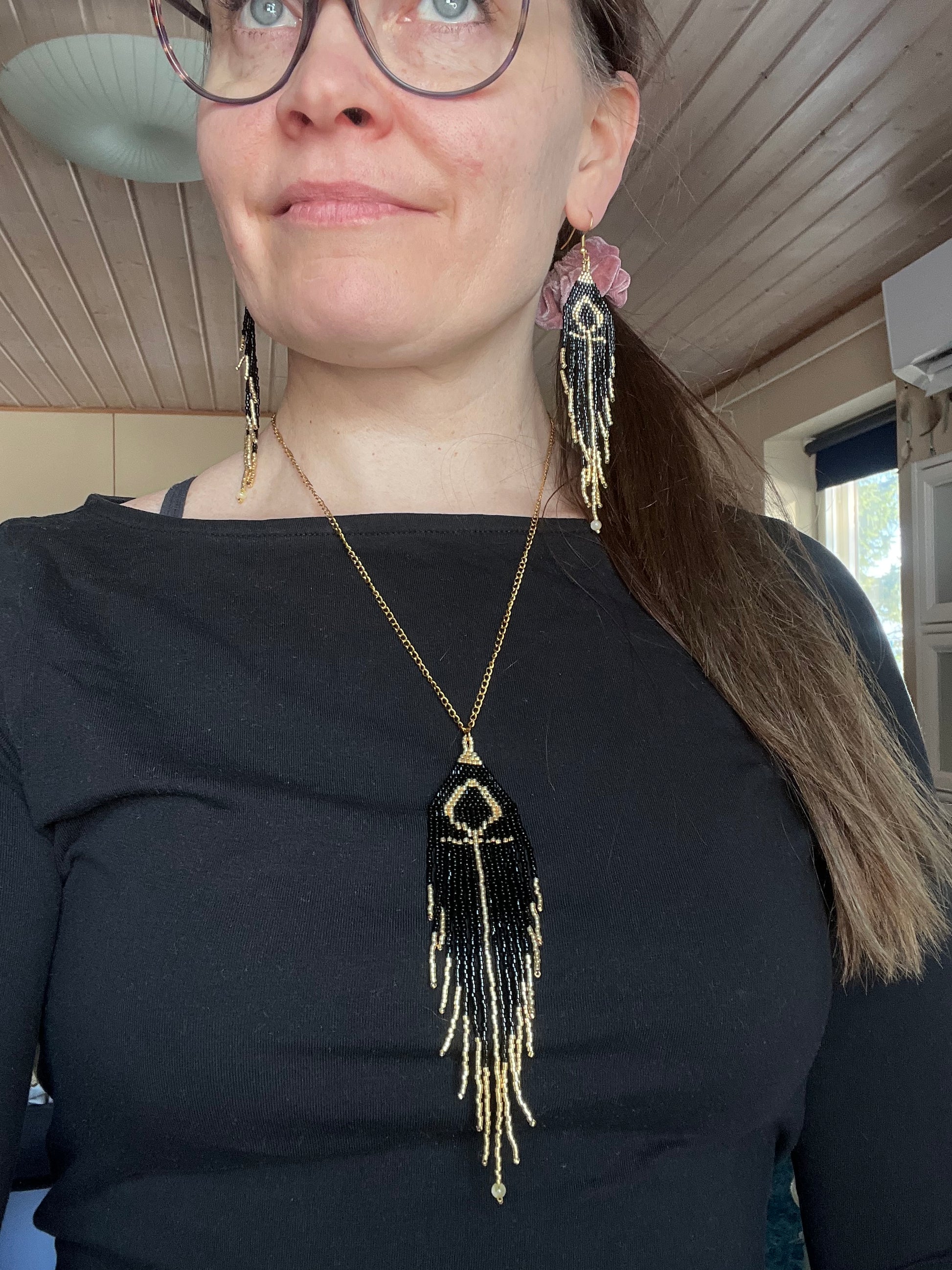 Jumalatar Isis astui tietoisuuteeni suuruudellaan ja sitten alkoi tapahtua. Ankh-symboli kantaa niin jumalallista taajuutta, ettei sitä ymmärrä ennenkuin sen kokee. Sain kanavoidusti ohjeet hengitysharjoitukseen ( uutiskirjeen mukana lähti linkki tähän harjoitukseen ). Kuvio resonoi heti ja sain vision korusetistä ensin musta-kultaisena ja sitten valkoinen-kultayhdistelmänä. Mustissa kivinä maskuliinisemmat sitriinit ja valkoisissa feminiiniset kuukivet.