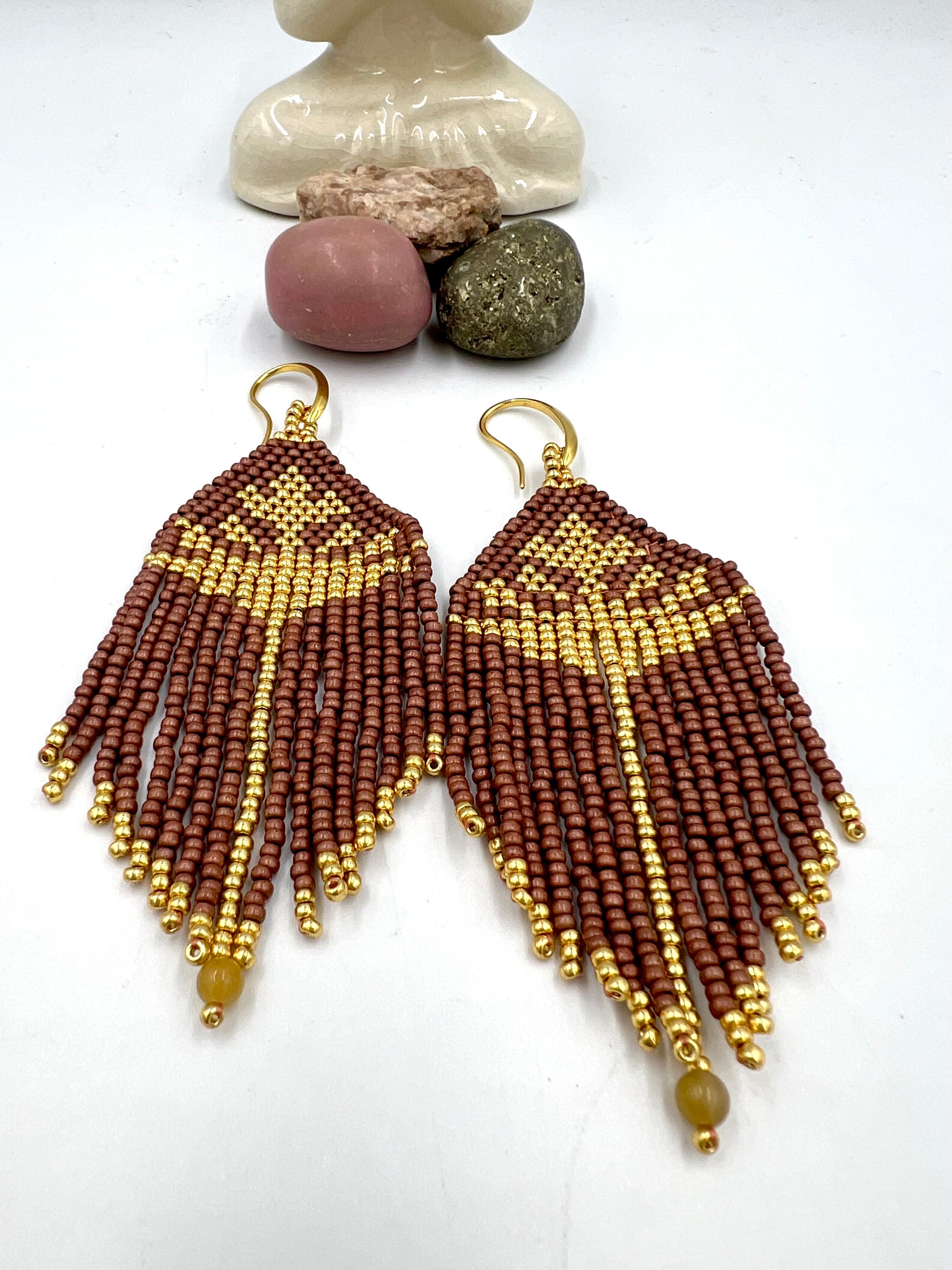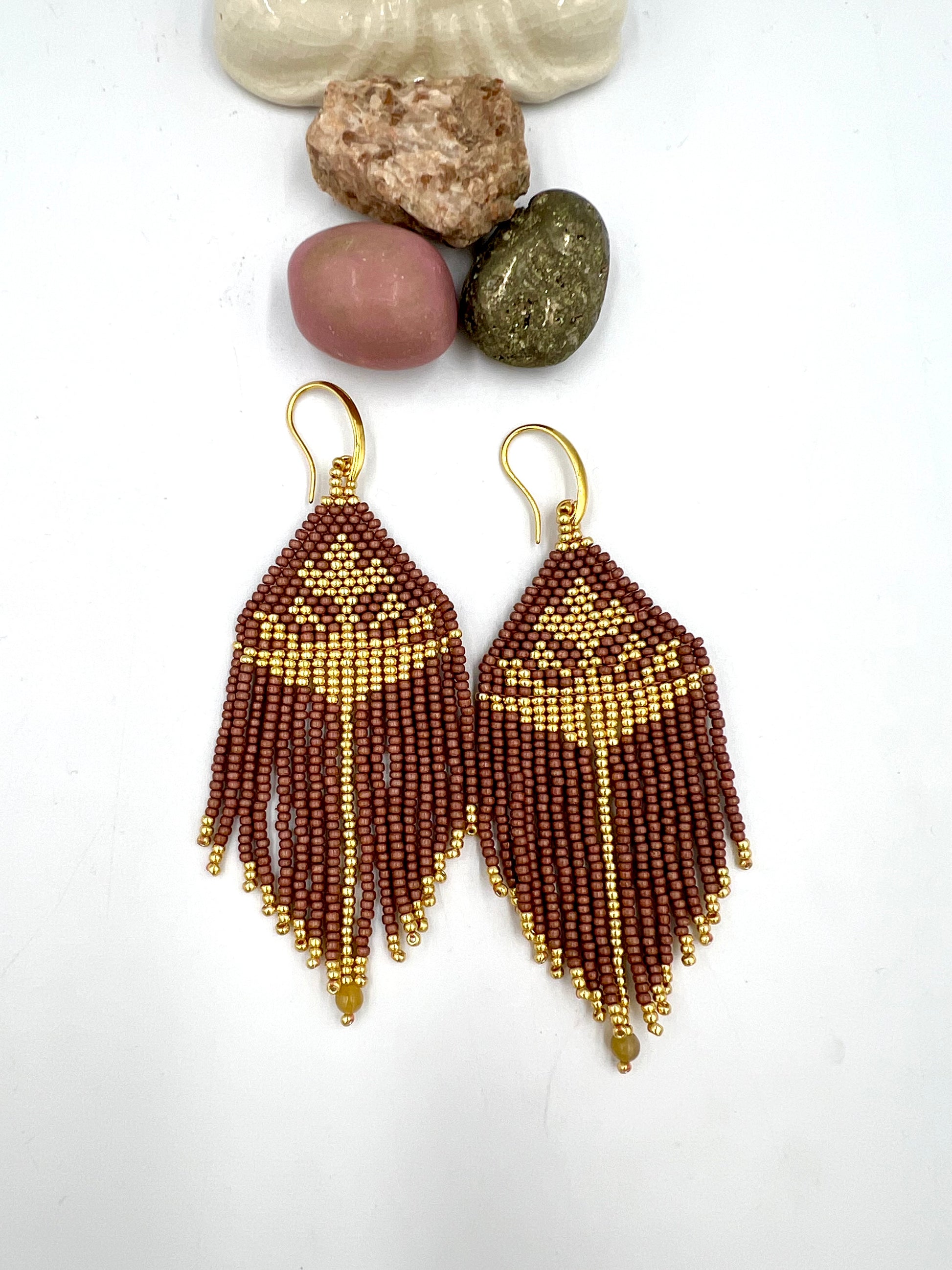 Lyhyempi versio Lotus-sarjasta, maanlöheisen ruskean ja kullan yhdistelmä. Honey jade-kivihelmet tuomassa uudenajan ilon värähdettä.