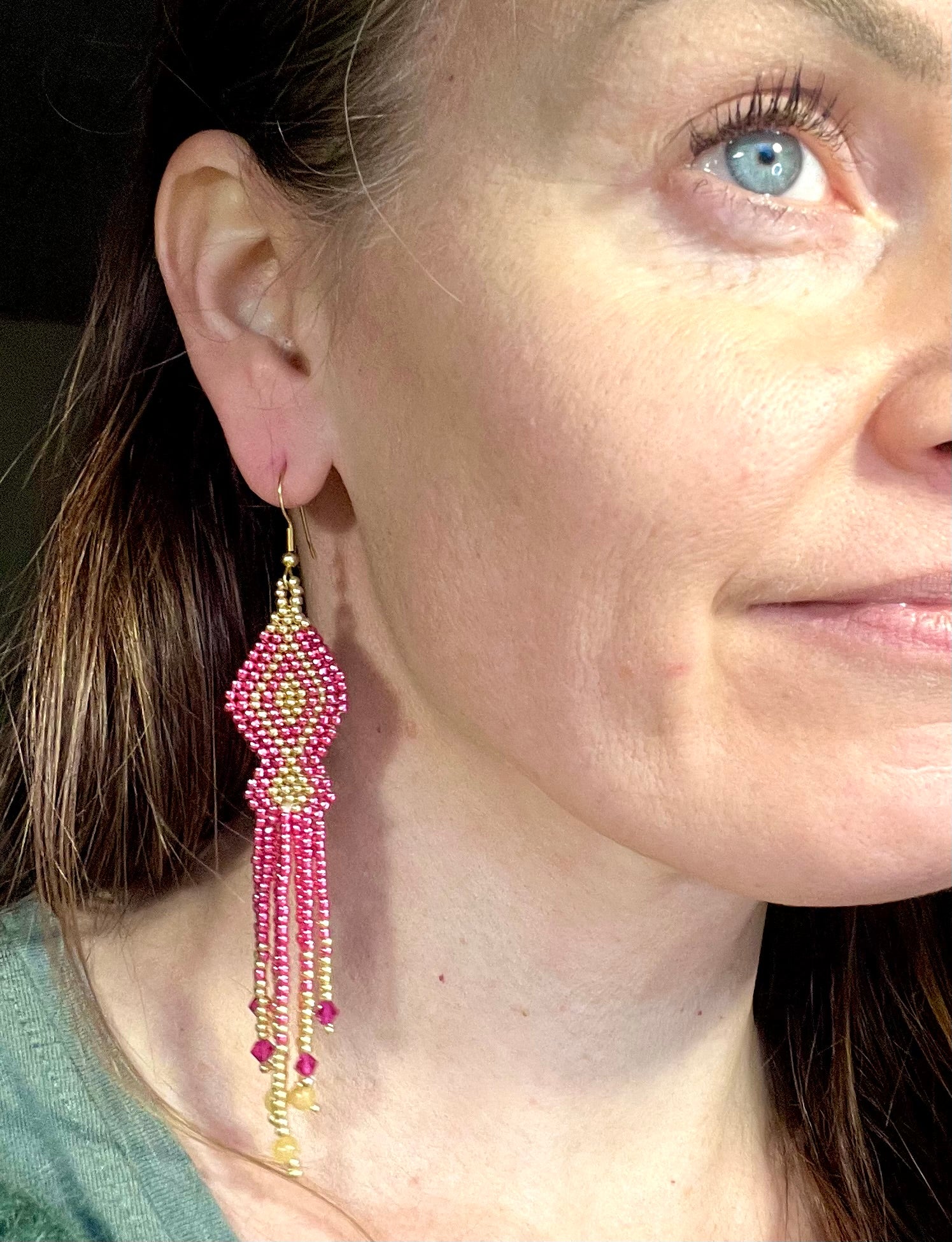 Hindujumalatar Lakshmin energioissa syntyneet korvakorut tuovat energiakenttääsi rikkauden ja valon, tiedon ja runsauden. Korvakorujen pinkki kristallinen energia yhdistyy hunaja-jadehelmien onnen värähteeseen. Korvakorut ovat kuin elämän tanssi , joka vie mennessään. Lakshmi on kaikkeuden jumalatar. Tanssi siis elämäsi runsautta, juhlista arkeasi sillä arjessa elämä näyttäytyy parhaimmillaan ja arjessa piilee onnen avaimet.
